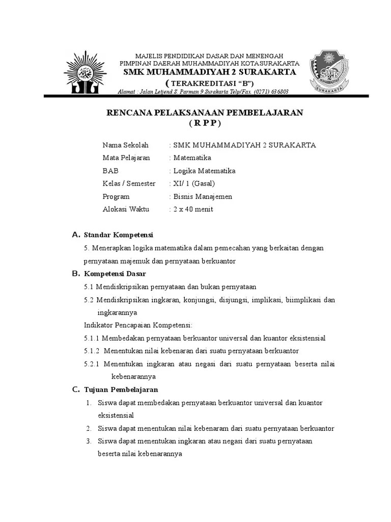 Contoh Rpp Logika Matematika Smk Kelas 11 - Rpp Logika Matematika1 Pdf Document : Matematika kelas xi akuntansi 1 di smk pgri 1 tulungagung.